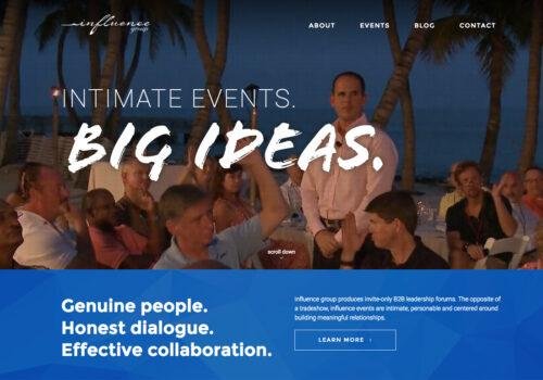 Influence Group produces invite-only B2B leadership forums designed to encourage open and candid dialogue between consumer providers and industry leading vendors. We created a professional website to show a bit of edge and creativity with event detail pages that speaks on past events and testimonials of successful connections from industry vendors.